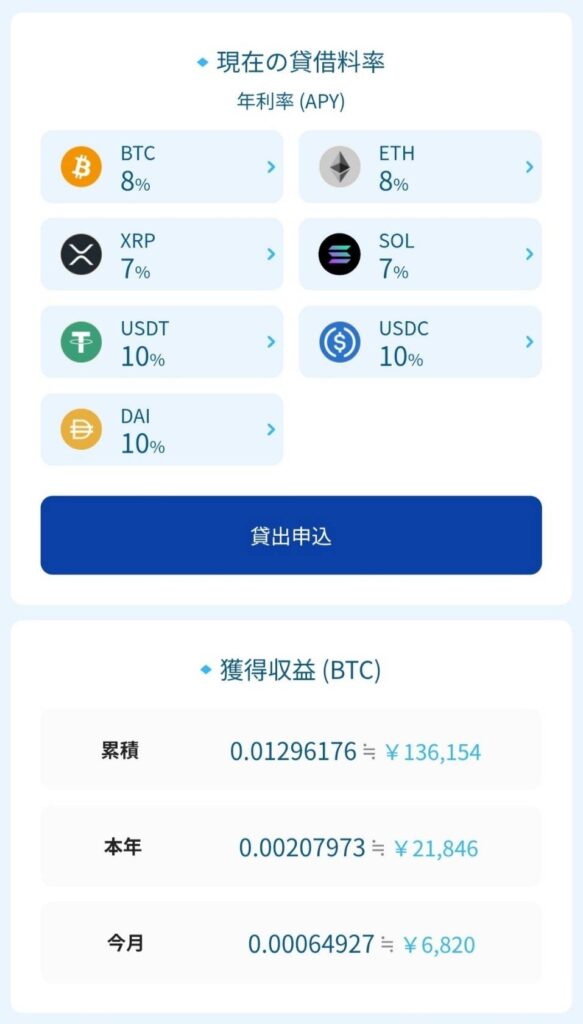 というのも、国内の暗号資産取引所が提供しているレンディングサービス(平均1〜2%)と比べてみても、約4倍近い差があるからです。