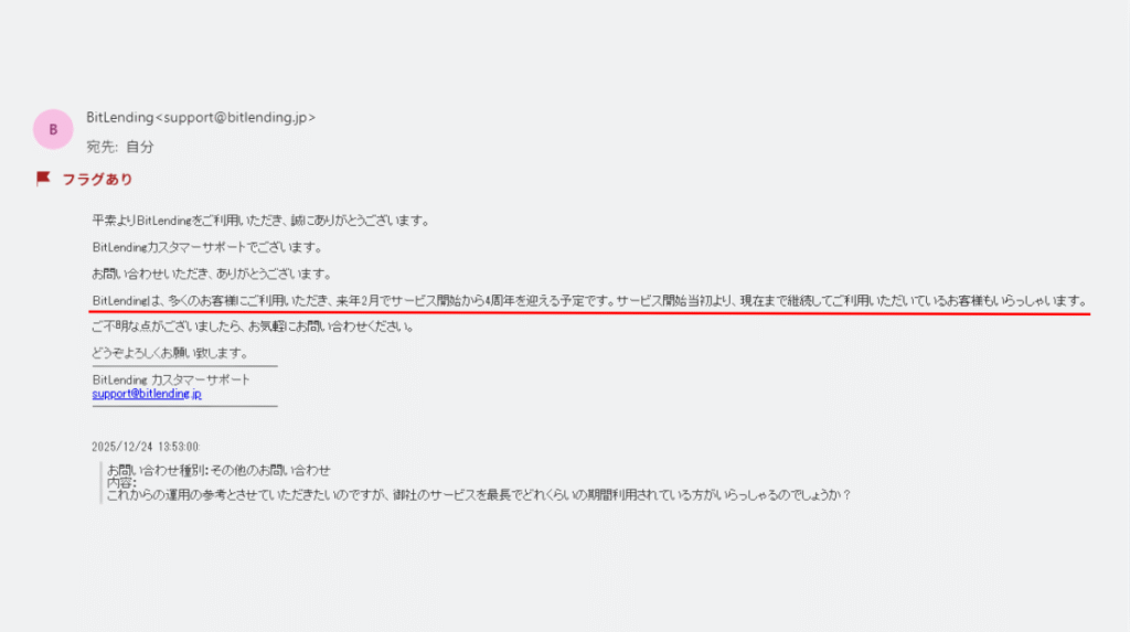 BitLendingには長期利用者の実績があることも、このサービスを選んだ理由です。